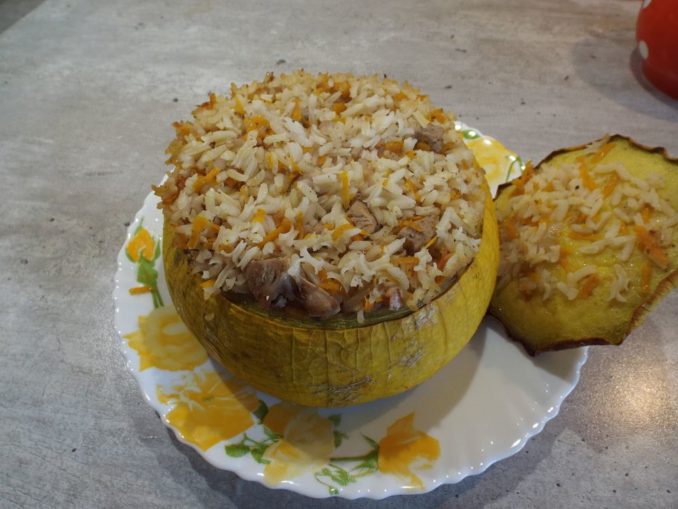 Иногда хочется приготовить чего-нибудь не совсем обычного. Или привычное блюдо подать не так, как всегда. В общем, нарисовалась у меня небольшая тыква. И решала я ее нафаршировать. Рис, мясо и овощи - чем не начинка для тыквы. Рецепт не сложный. Телодвижений немного. Короче, будет у нас на ужин новое блюдо.
